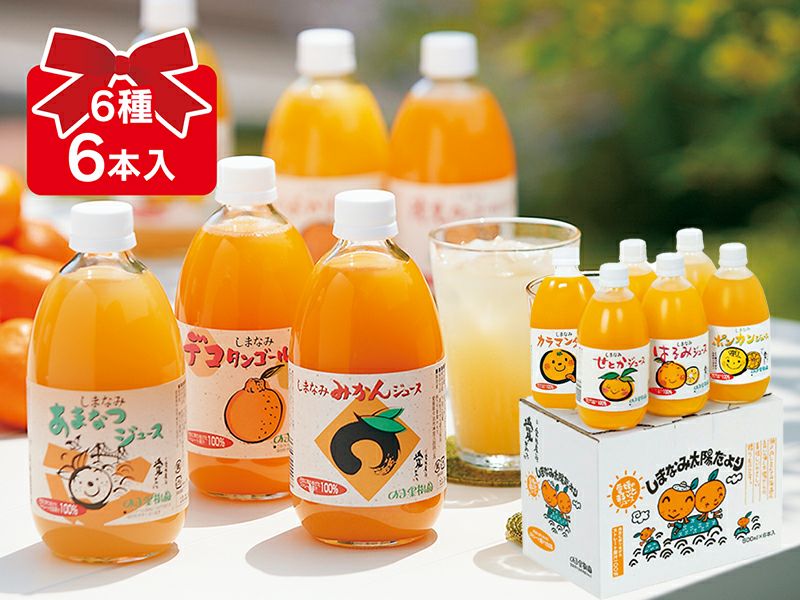 数量限定販売の「しまなみ味くらべ太陽だより」では、旬が異なる柑橘をセットにしました!定番の温州みかんから生産量が少ない希少柑橘まで、全6品種のジュースがそろい踏み。バリエーション豊かな瀬戸内産柑橘の味と香りを飲み比べてみてください!